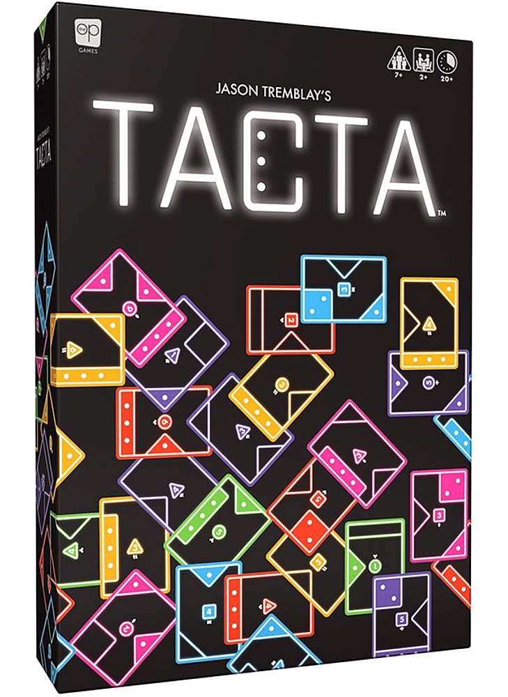 It’s all connected! In this sneakily strategic card game, players flip, twist, and turn their cards to align and cover their opponents’ shapes with matching squares, triangles, and rectangles. With an ever-growing board, up to 8 colors light up game night with TACTA™. Analyze, strategize, and optimize because in TACTA™, every card counts.