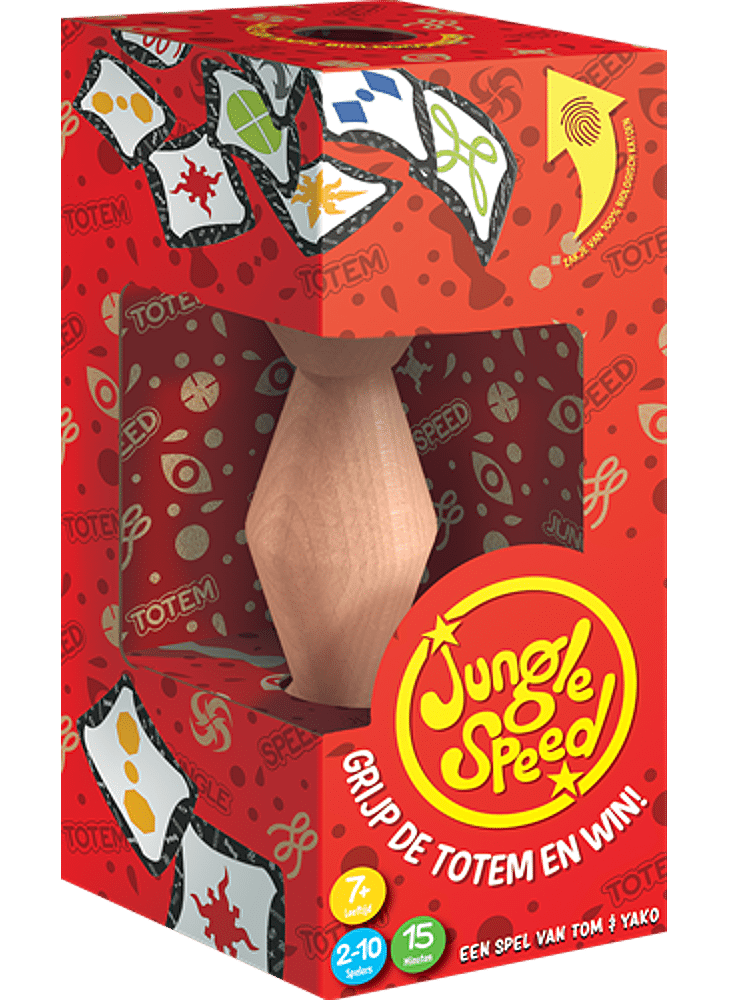 Speciale, milieuvriendelijke versie van het het klassieke, razendsnelle kaartspel Jungle Speed waarbij de verpakking in een ECO versie (zonder plastic) is veranderd en ook het zakje met de kaarten is van 100% biologisch katoen.