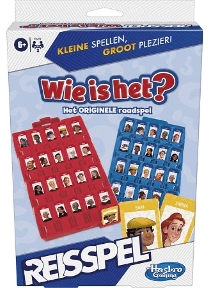 En let op, want je tegenstander stelt ook vragen. Als jij als eerste kunt raden wie het is, win je deze handige compacte versie van Wie is het?!