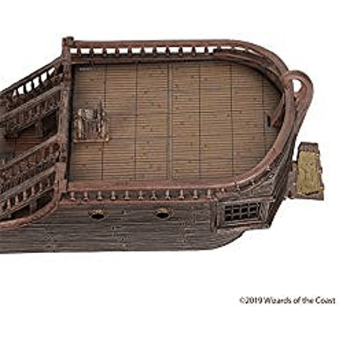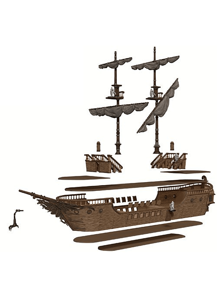 This feature rich ship includes multiple standalone deck tiles allowing players to fight on the deck or in the dark underbelly of the ship, magnetized removable masts, and even functional hatches on the sides of the ships for you to fire upon your enemies!