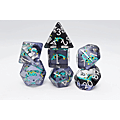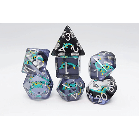 De set bevat zeven dobbelstenen (D4, D6, D8, D10, D%, D12 en D20), gemaakt van duurzaam, helder resin met goed leesbare cijfers. Het kleurenspel van deze set vangt perfect de rustige elegantie van waterwezens en spirituele harmonie. De Turquoise Koi RPG Dice Set is een ideale keuze voor monniken, druïden, watermagiërs of elk personage dat zich verbonden voelt met natuur, balans of spirituele reizen.
